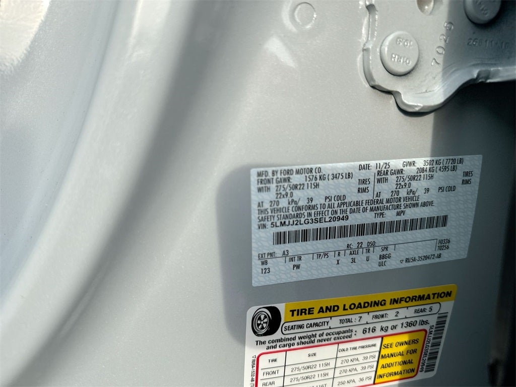 Discover unmatched power with the 2025 Lincoln Navigator Reserve, featuring a robust 3.5L V6 engine paired with a sophisticated 10-speed automatic transmission. This four-wheel-drive powerhouse ensures a smooth and commanding ride, whether navigating city streets or exploring rugged terrain. Safety is paramount with advanced features like Blind Spot Monitor, Evasion Assist, and Front Collision Mitigation. Inside, indulge in premium leather seating with massage functionality, a panoramic roof, and a state-of-the-art navigation system. The Lincoln Navigator Reserve is where cutting-edge technology meets refined elegance, offering an unparalleled driving experience in Crystal White Metallic Clearcoat.