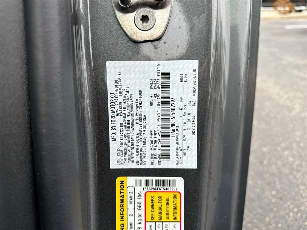 Discover the 2026 Ford Mustang, where performance meets innovation. At its heart lies a formidable 5.0L V8 Ti-VCT engine, delivering exhilarating power and precision. Paired with a 10-speed automatic transmission, this rear-wheel-drive coupe offers seamless acceleration and dynamic handling. The Carbonized Gray Metallic exterior complements its robust performance. Safety is paramount, featuring advanced systems like Blind Spot Monitor, Lane Keeping Assist, and Front Collision Mitigation. With a Locking/Limited Slip Differential and high-performance tires, every drive is a thrilling experience. The 2026 Mustang is engineered for those who crave both power and safety in a refined package.