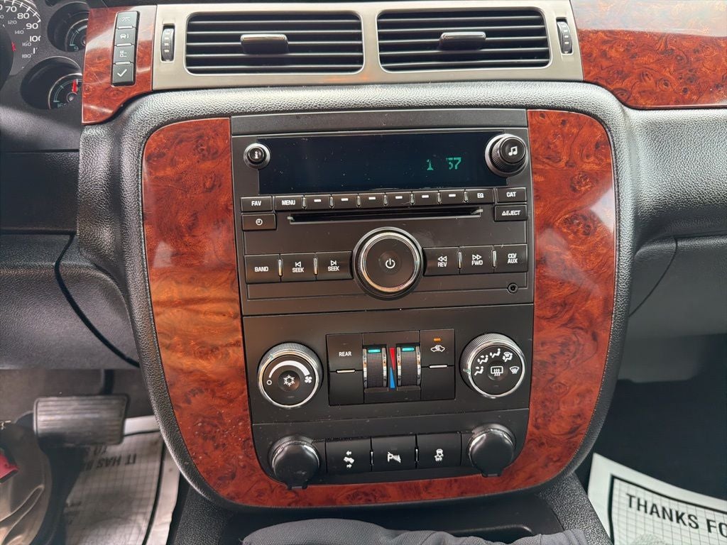 4WD Vortec 5.3L V8 SFI Flex Fuel Iron Block 6-Speed Automatic Electronic with Overdrive 4D Sport Utility Silver Ice Metallic, 4WD, Ebony Cloth, 3rd row seats: split-bench, 6 Speakers, CD player, Front dual zone A/C, Fully automatic headlights, Heavy-Duty Trailering Package, Power driver seat, Power windows, Rear Vision Camera, Speed control, Steering wheel mounted audio controls.