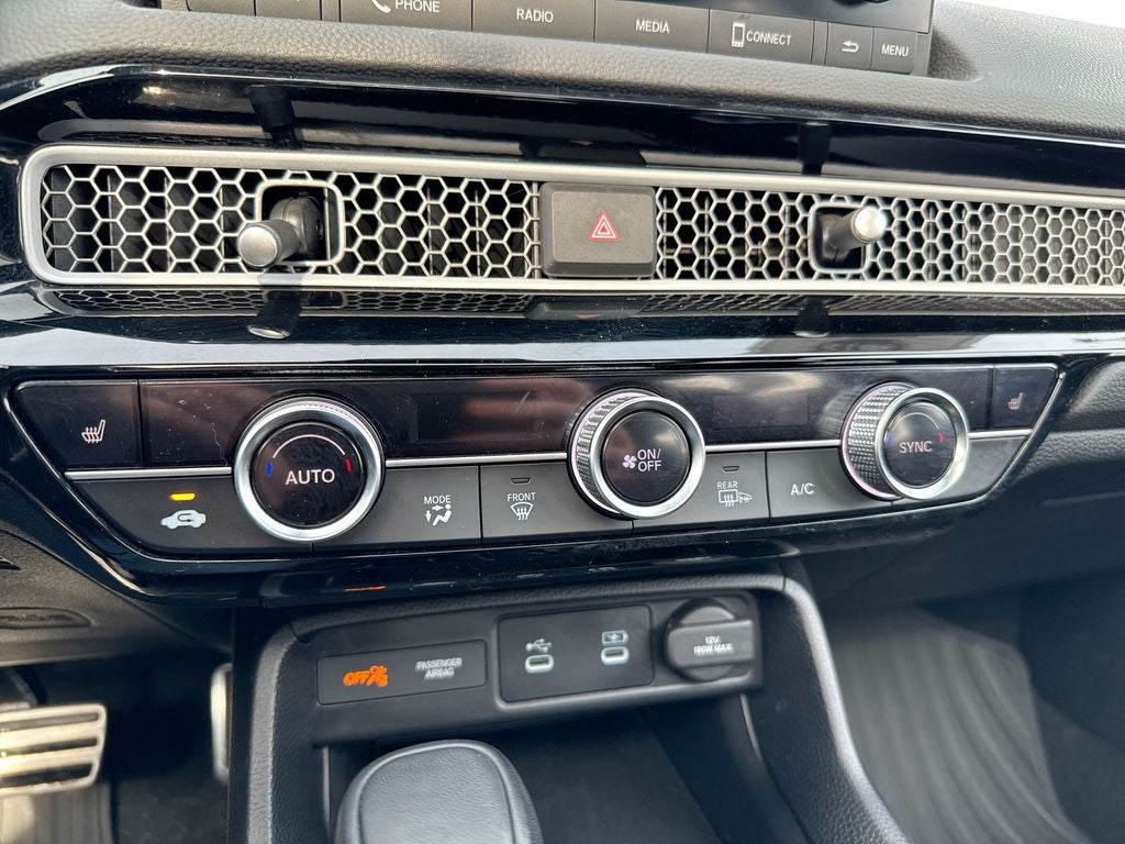 The interior of the Civic Hybrid Sport is designed with your comfort and convenience in mind. Enjoy the premium sound system, dual-zone automatic climate control, and the intuitive infotainment system with Apple CarPlay and Android Auto integration. The heated front seats and leather-wrapped steering wheel add a touch of luxury to your daily drives.